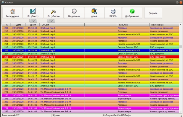 В журнале событий на компьютере АРМ оператора системы экстренной связи регистрируются события: - приема вызовов; - переговоров с диспетчером; - открытия корпуса БЭВС; - неисправности голосового канала; - неисправности видеоканала. |